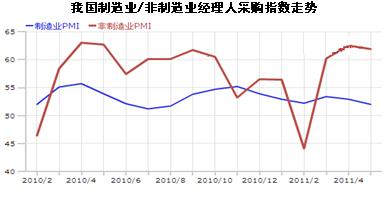 制造業(yè)PMI除3月份短暫回升以外,持續(xù)小幅回落,顯示出經(jīng)濟(jì)增速逐漸趨緩。 5月份從11個分項指數(shù)均有不同程度回落,其中,新訂單指數(shù)、積壓訂單指數(shù)、購進(jìn)價格指數(shù)、原材料庫存指數(shù)回落較明顯,回落幅度超過1個百分點,尤其以購進(jìn)價格指數(shù)回落幅度為最大,達(dá)到5.9個百分點 。