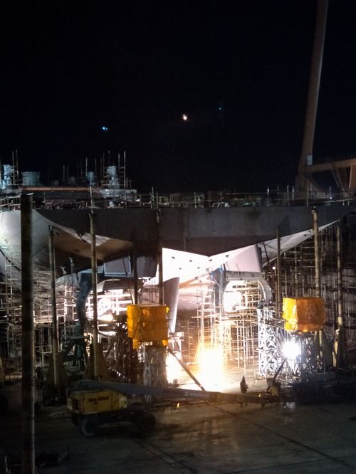 4月13日22:30,金海重工江南山基地承建的7000方耙吸式挖泥船軸舵系照光項目,在經過四小時緊張的數據校驗、精度測量后認定合格,現場駐廠船東、CCS船級社代表確認檢驗圓標記并在報告上簽字,標志著金海重工首制新型船舶按期實現照光節點。