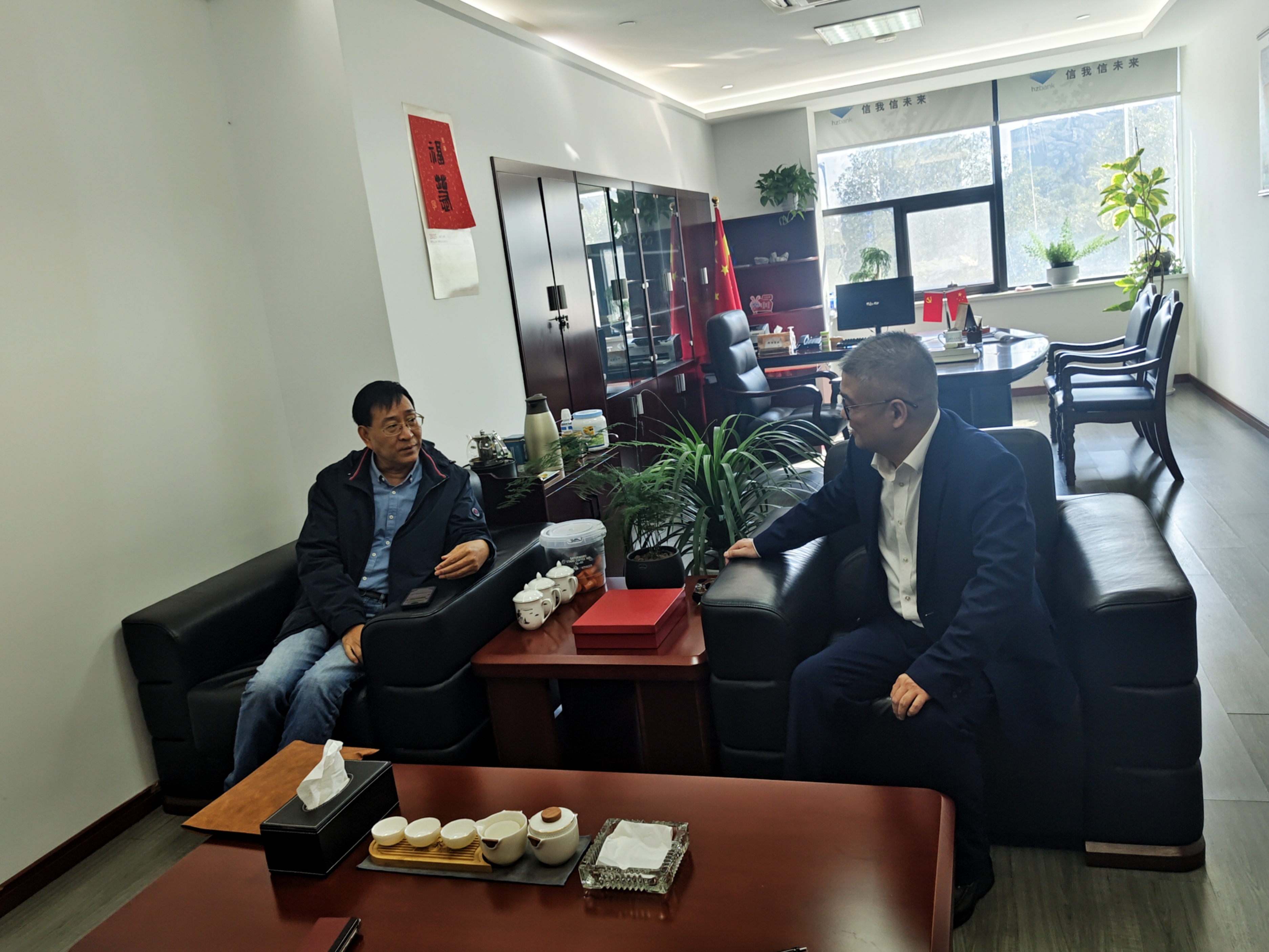 11月19日,協會常務副會長陳國強帶隊走訪理事單位杭州銀行股份有限公司舟山普陀支行,進行實地調研和座談交流,雙方就深化銀企合作進行了深入探討。
