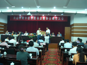 舟山市對(duì)外經(jīng)濟(jì)貿(mào)易企業(yè)協(xié)會(huì)在市外經(jīng)貿(mào)局和協(xié)會(huì)籌建工作小組的共同努力下,在市外經(jīng)貿(mào)企業(yè)的積極支持參與下,今天在這里召開成立大會(huì)。首先,我代表市政府向大會(huì)表示熱烈地祝賀!并衷心感謝籌建工作小組的積極工作和外經(jīng)貿(mào)企業(yè)的積極參與!